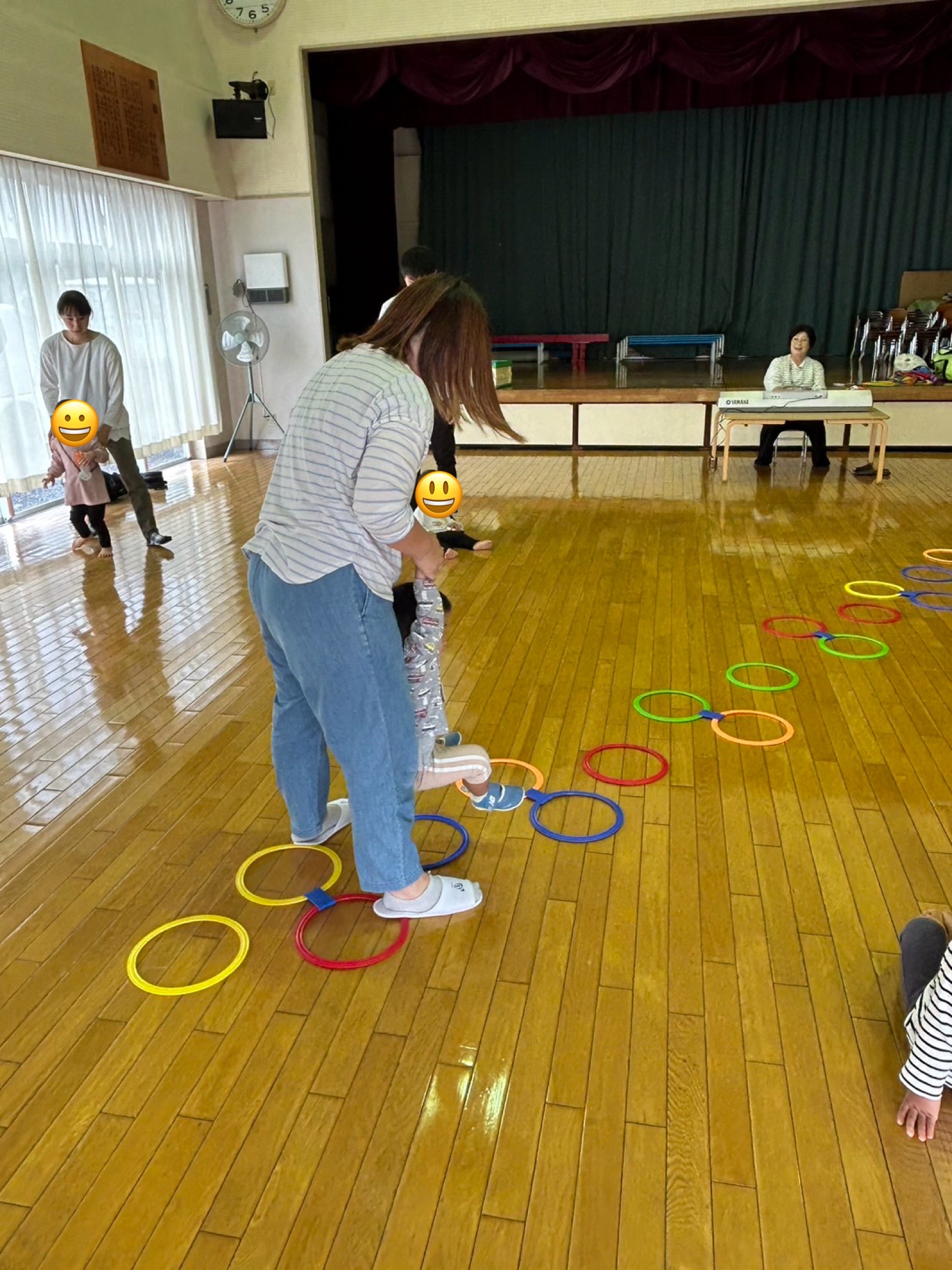 バランスをとったり、お母さんや先生達のトンネルをくぐったり…。