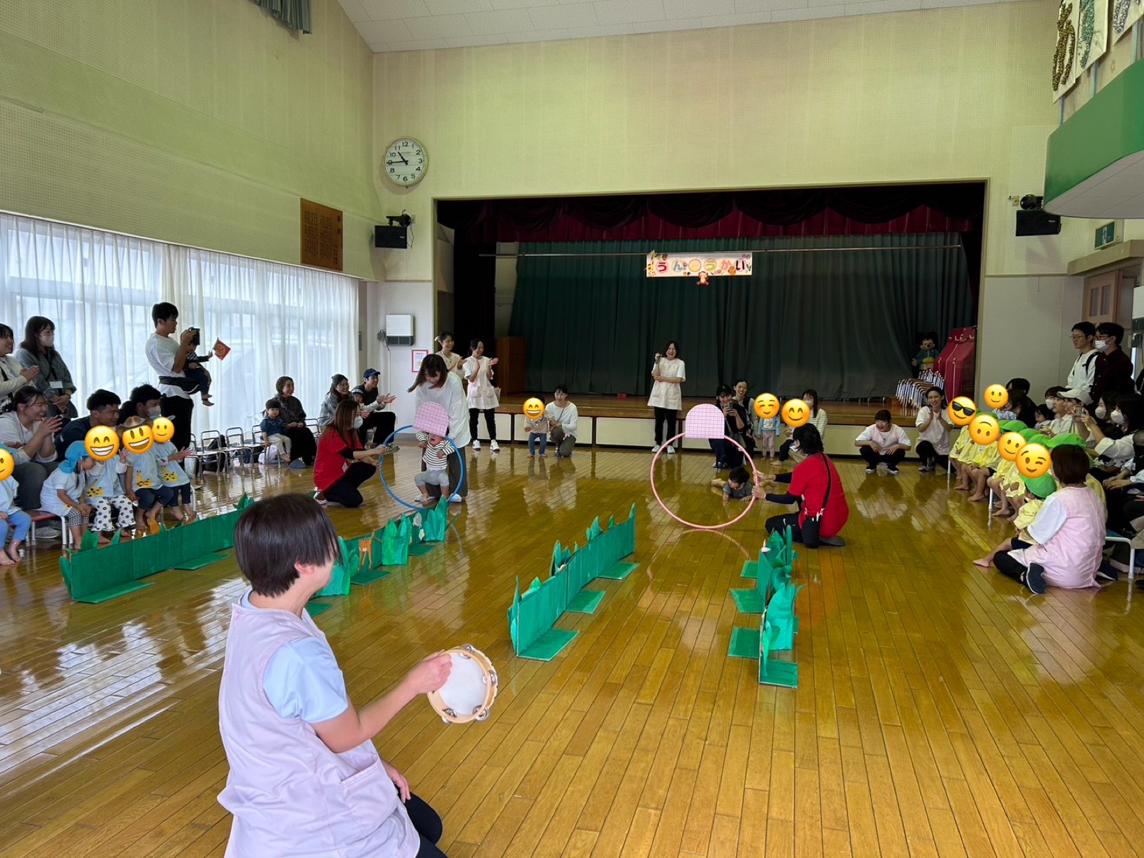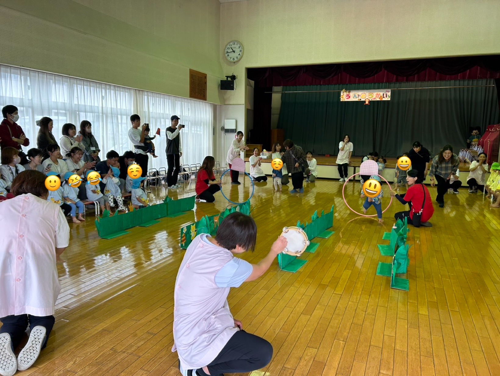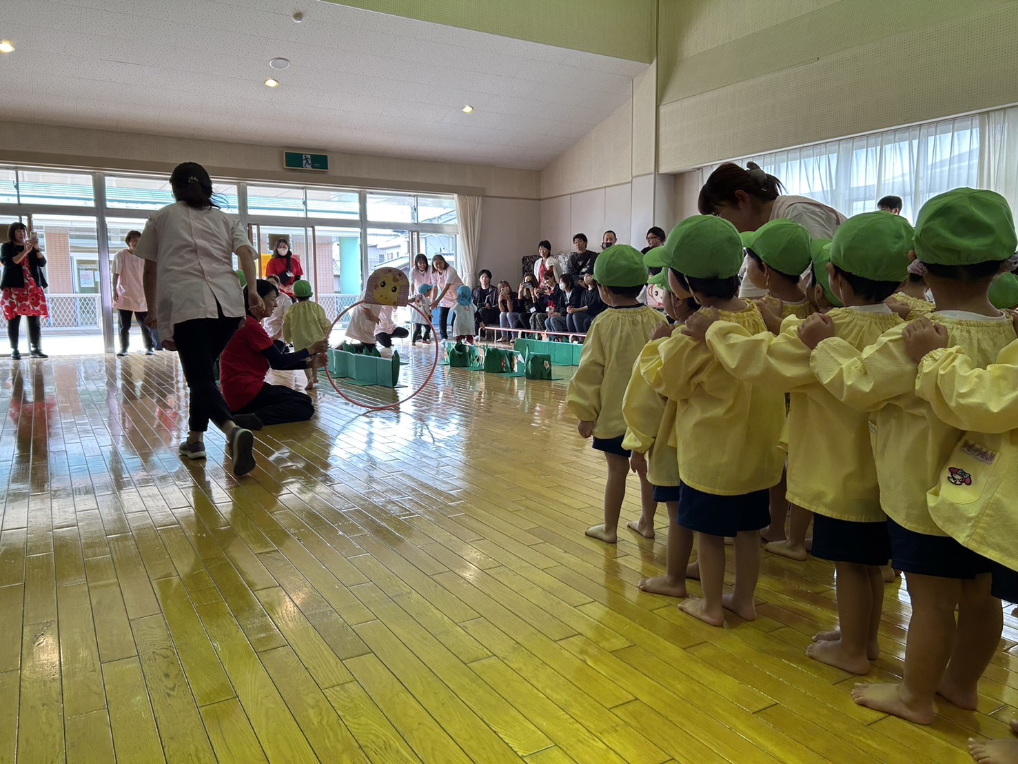 お子様やお友達、保護者様、職員一丸となって運動会ごっこを楽しみました。
