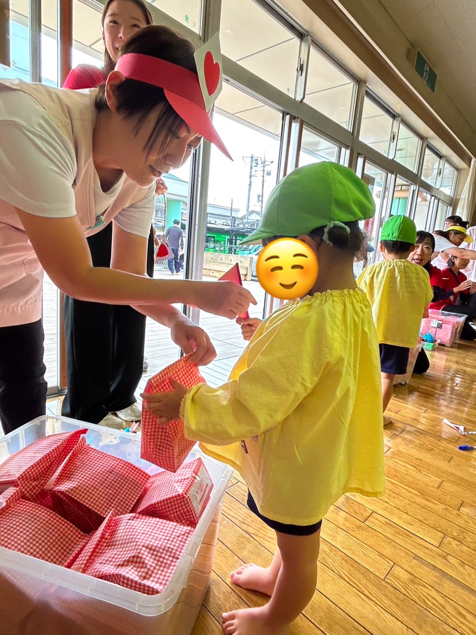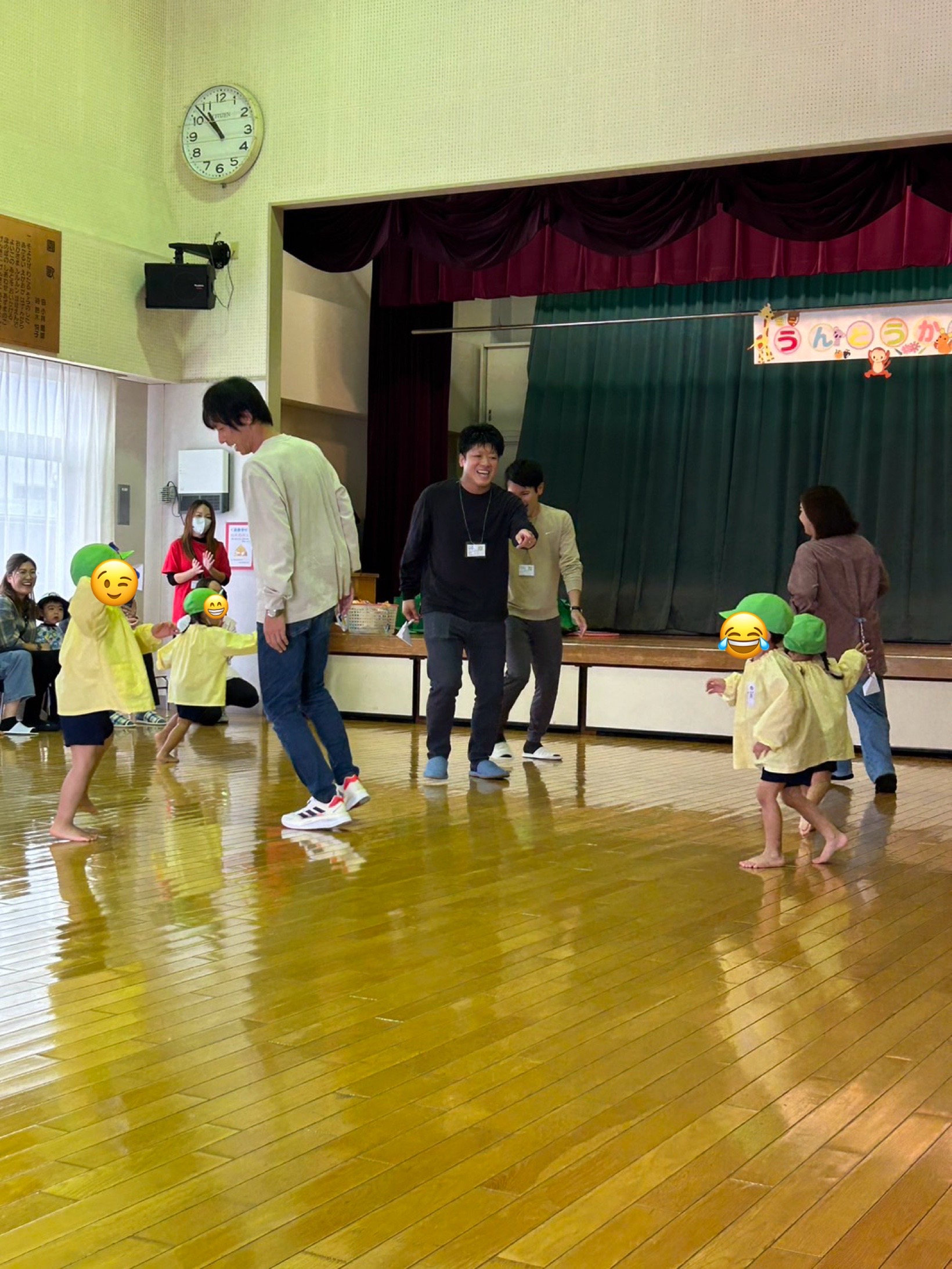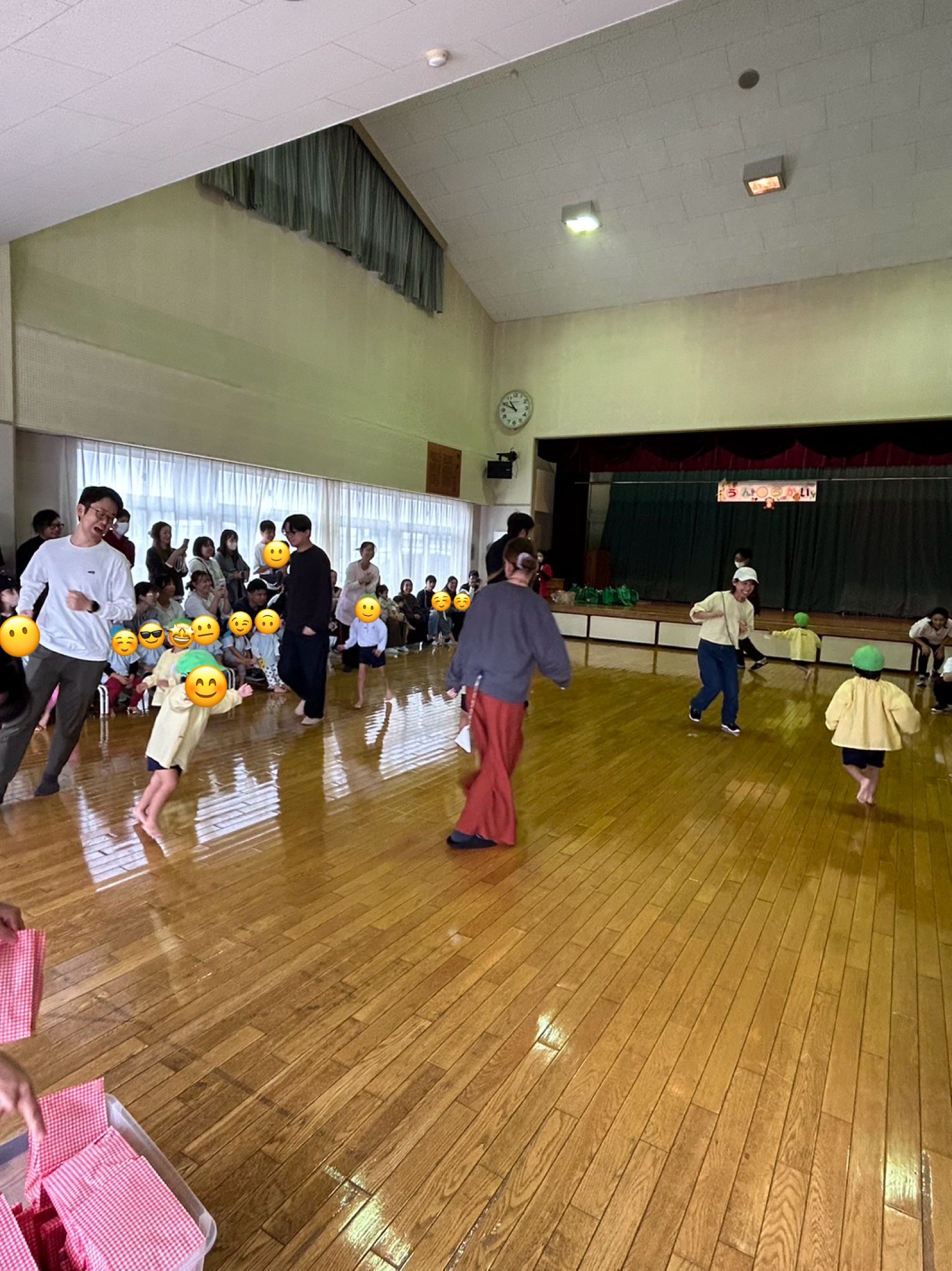 その次は保護者の方が洗濯バサミでしっぽをつけて逃げ回り子供達が追いかけてしっぽをとりました。