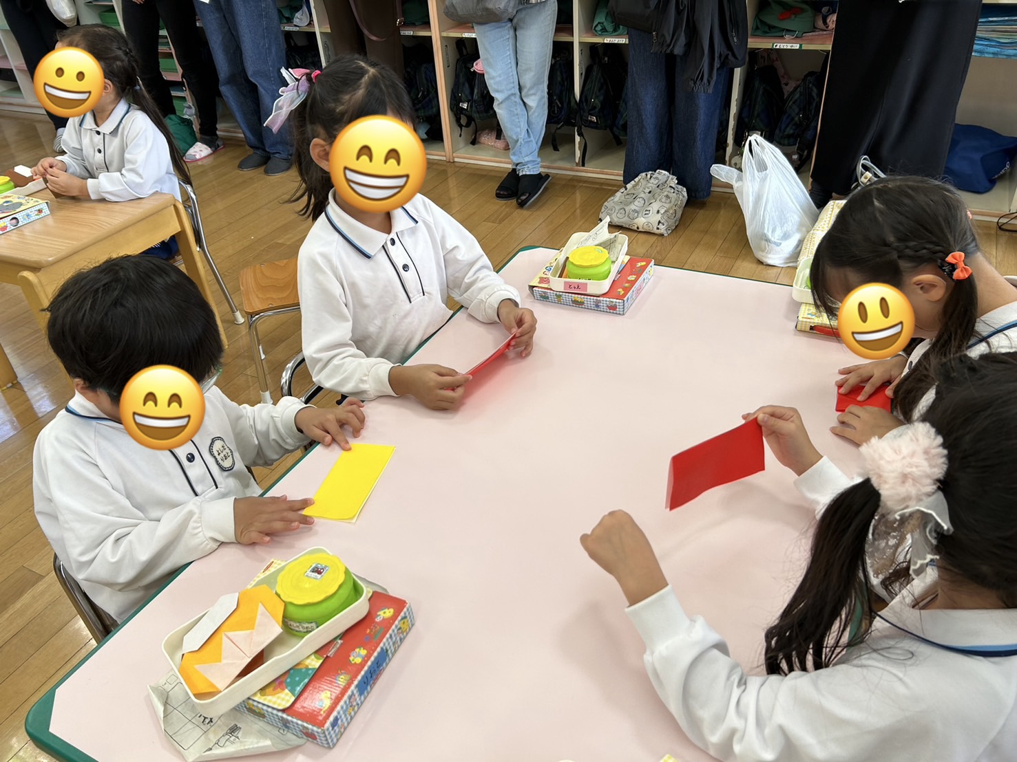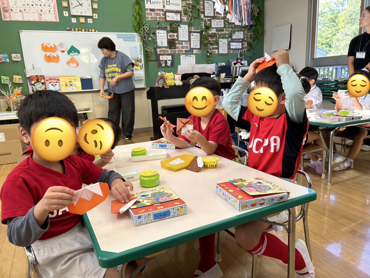 先生のお話を『聞いて→見て→自分で折る』活動をしました🤗
