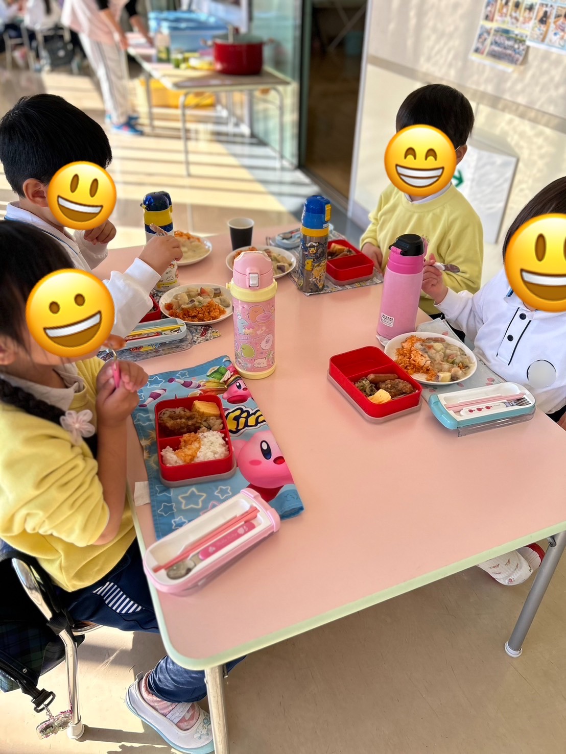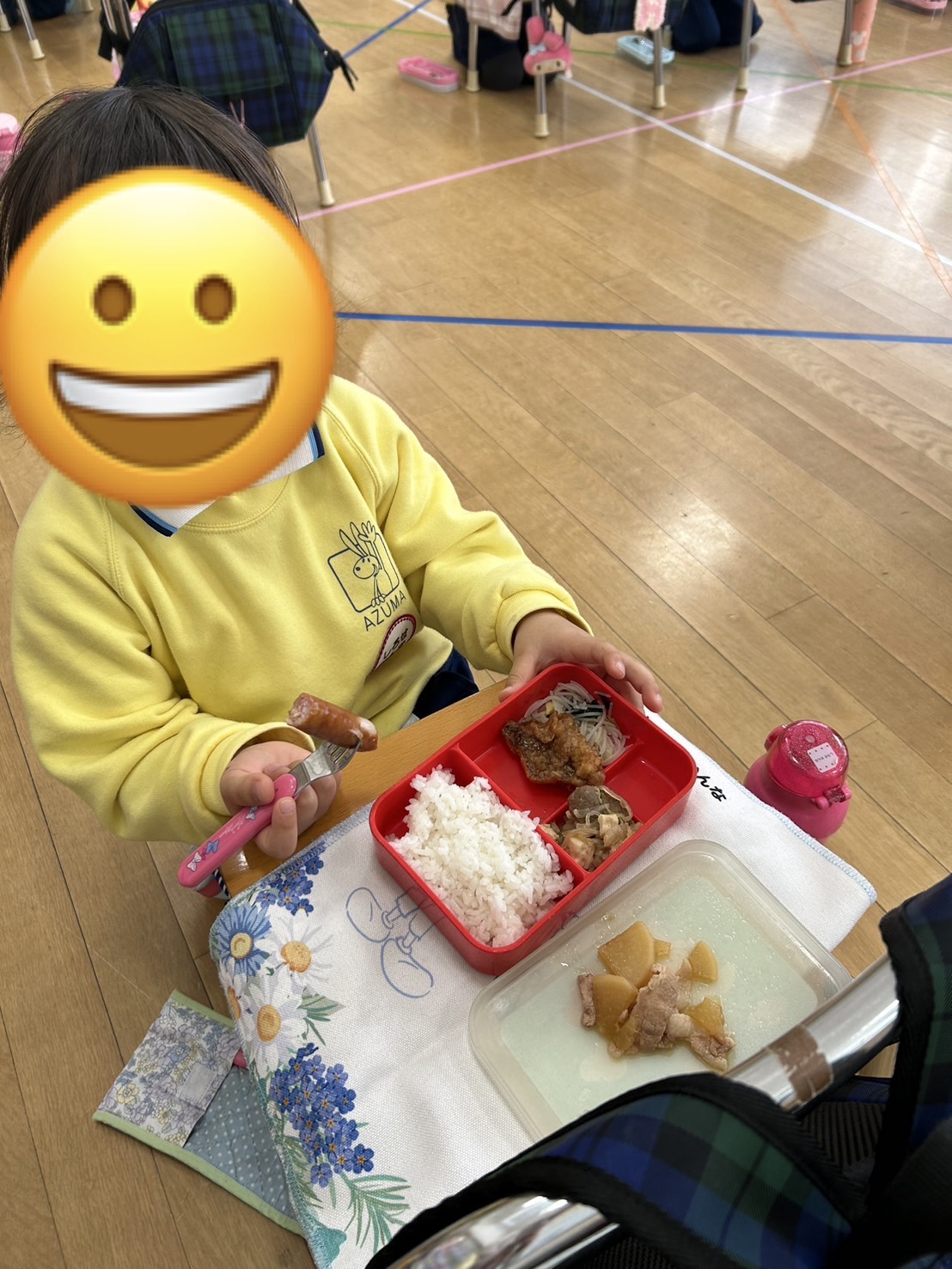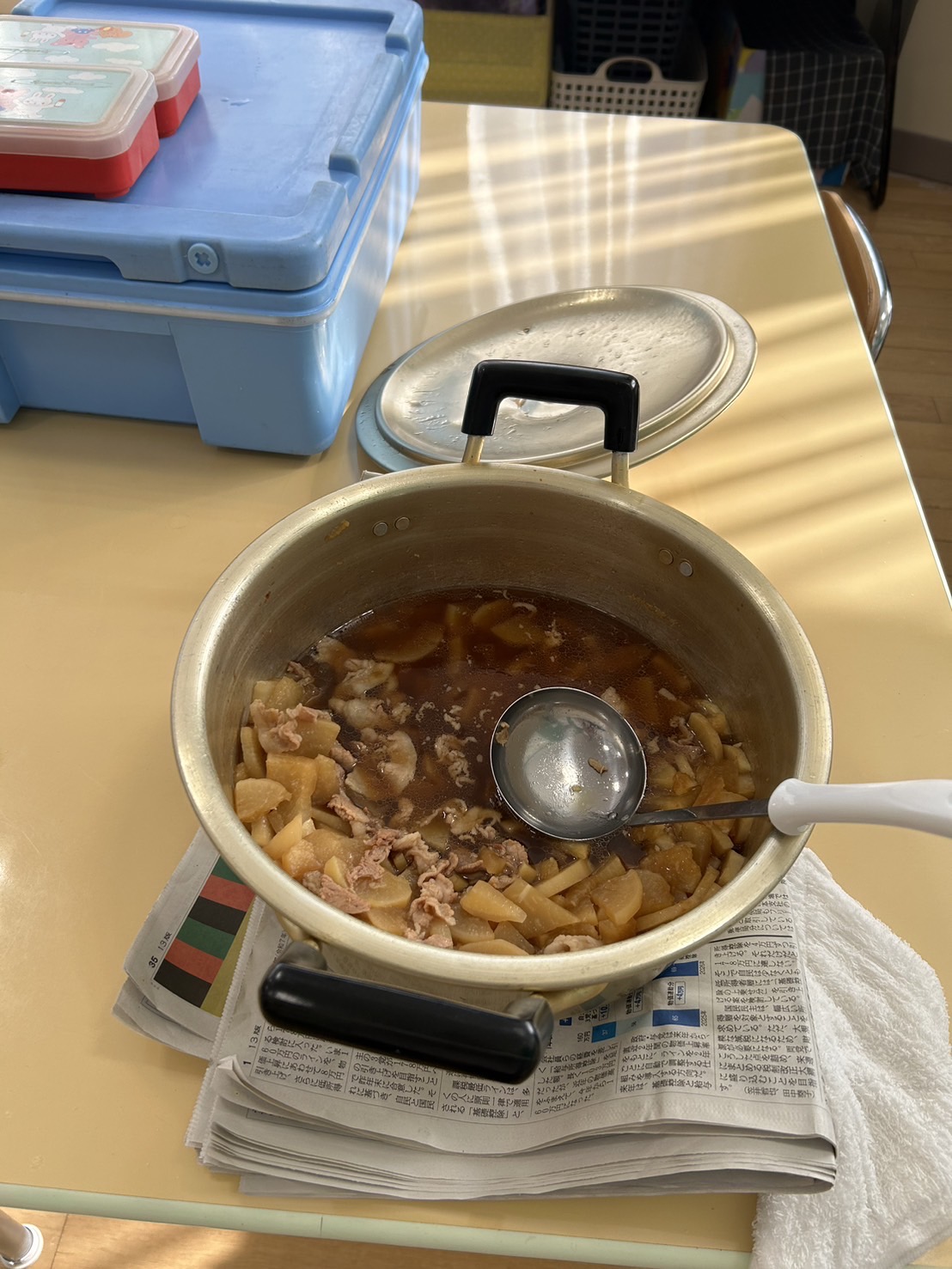 園の畑で収穫した大根やさつま芋を使ってお楽しみ給食をしました。
