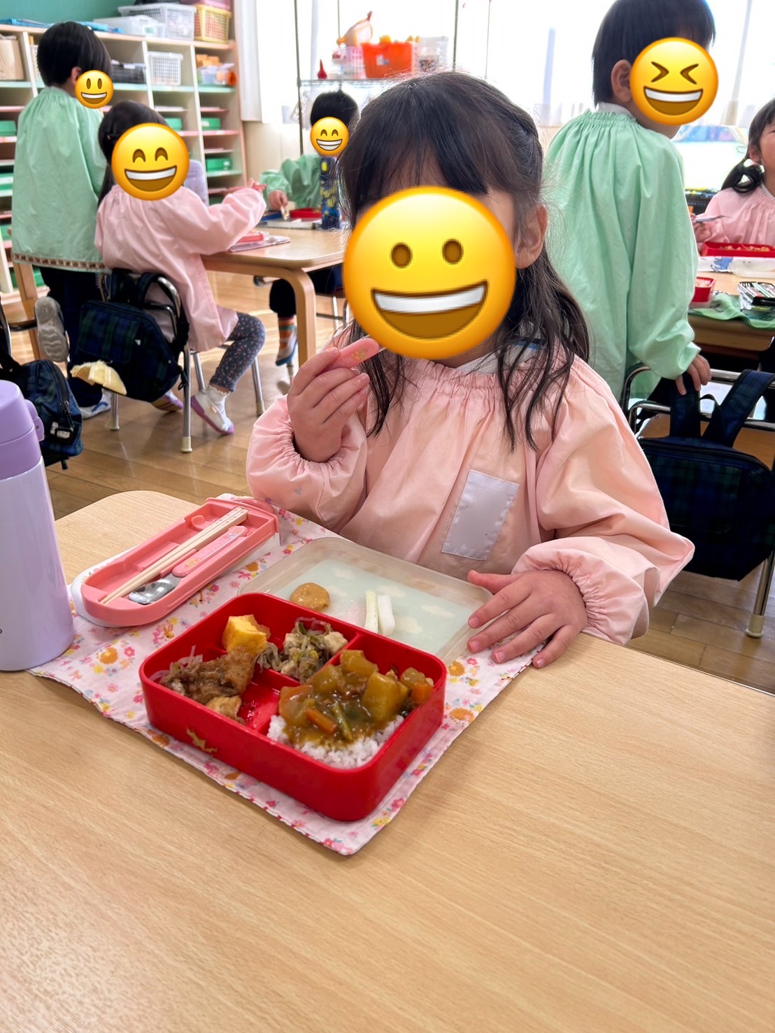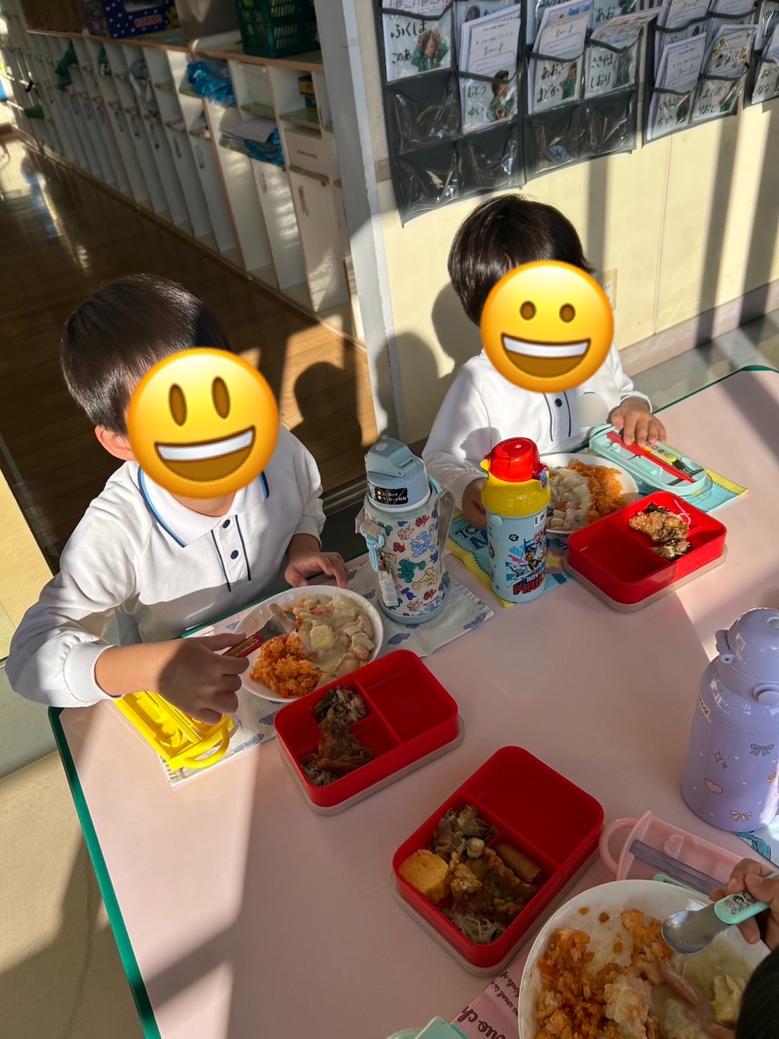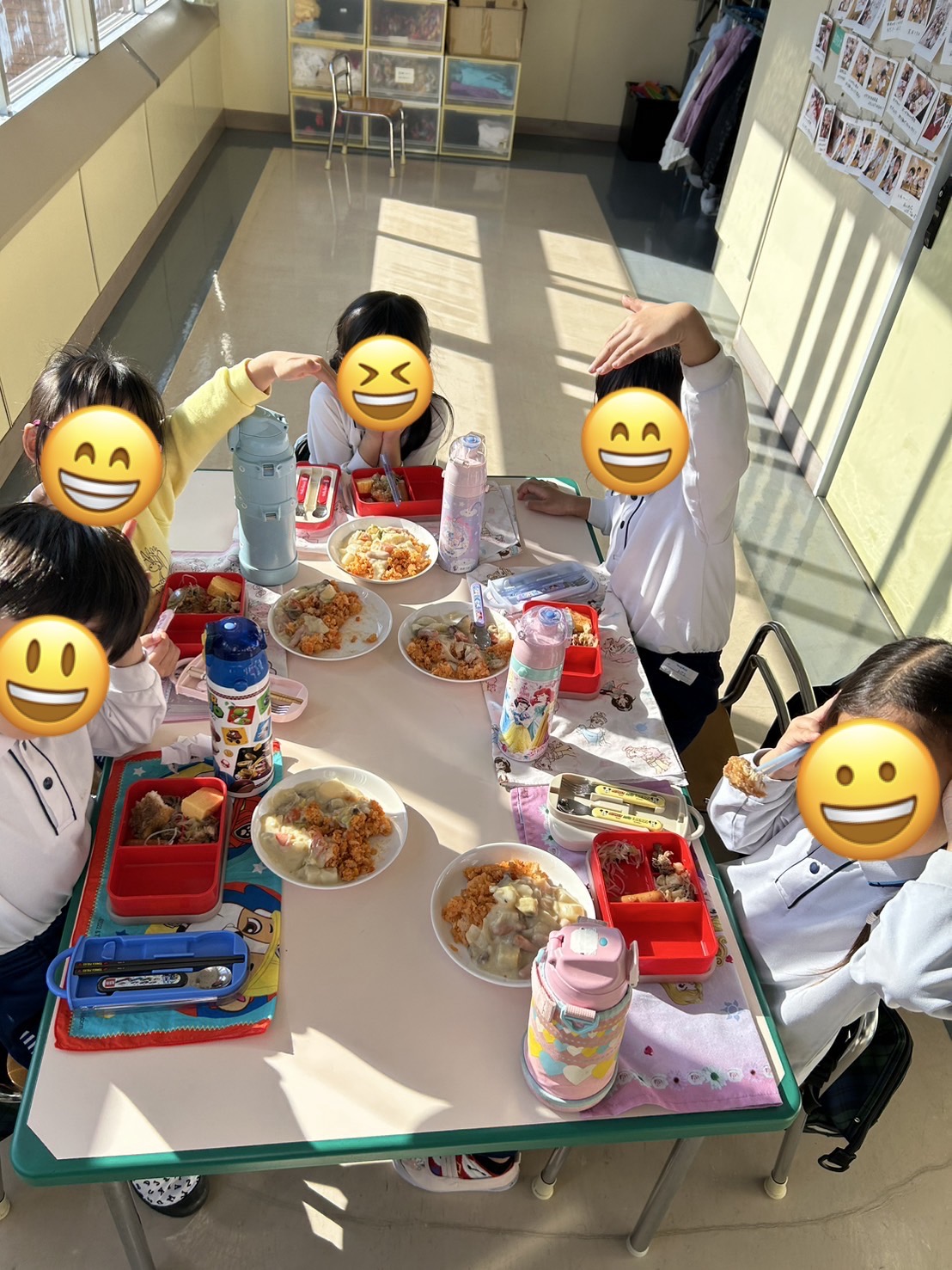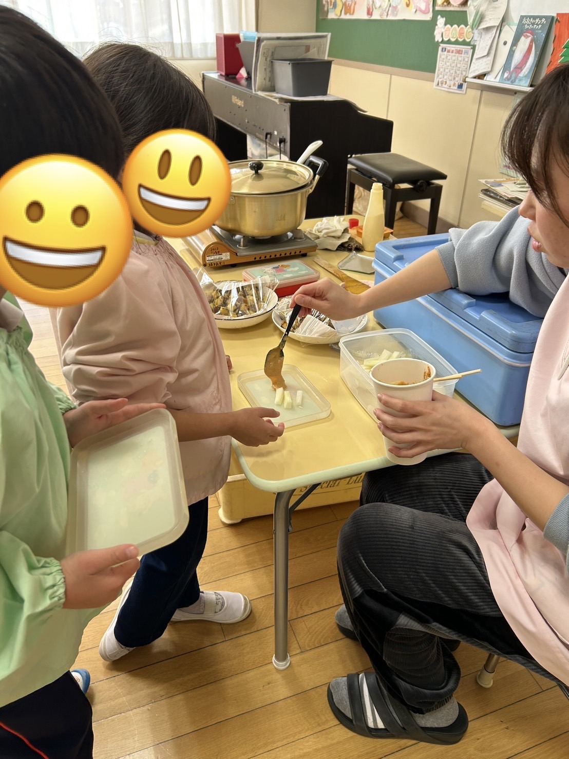 園の畑で収穫した大根やさつま芋を使ってお楽しみ給食をしました。