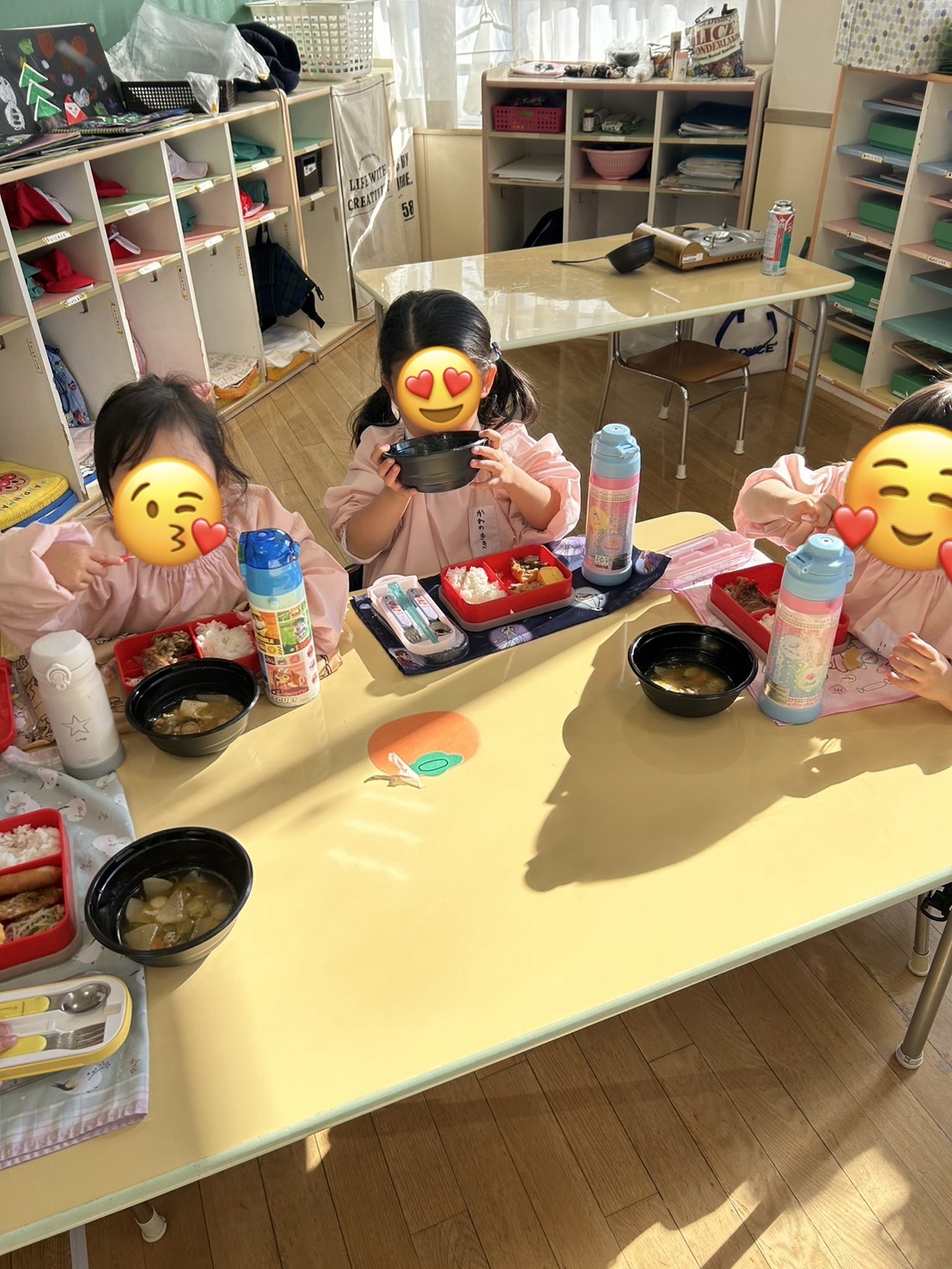 ぽっかぽかの廊下でまつ・すぎ合同でランチパーティー🍽️