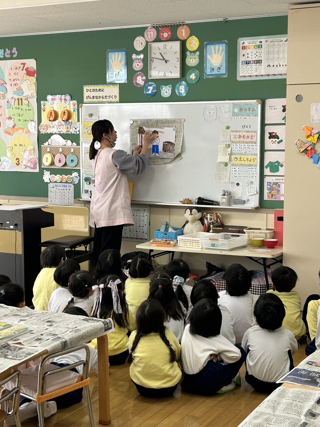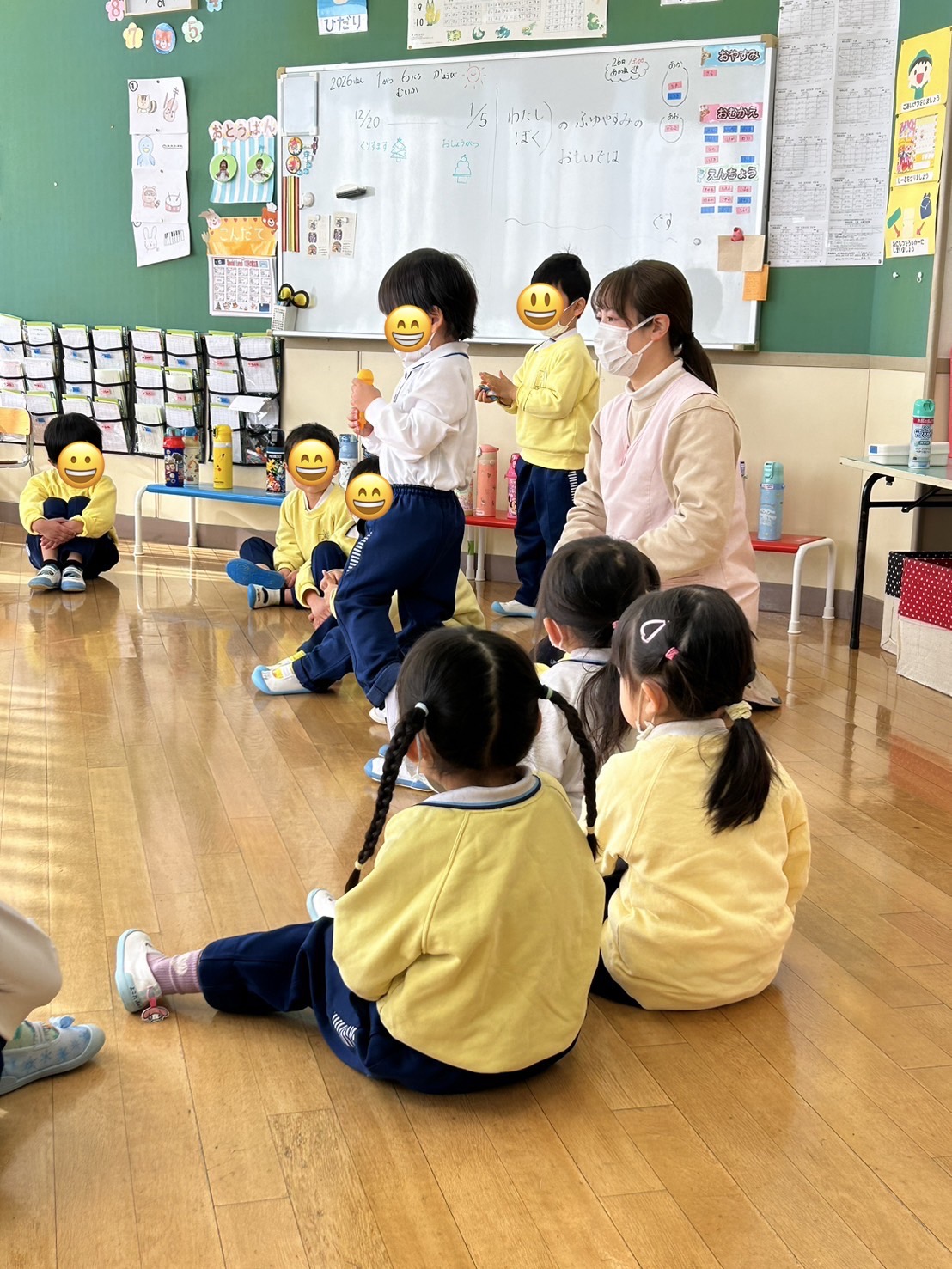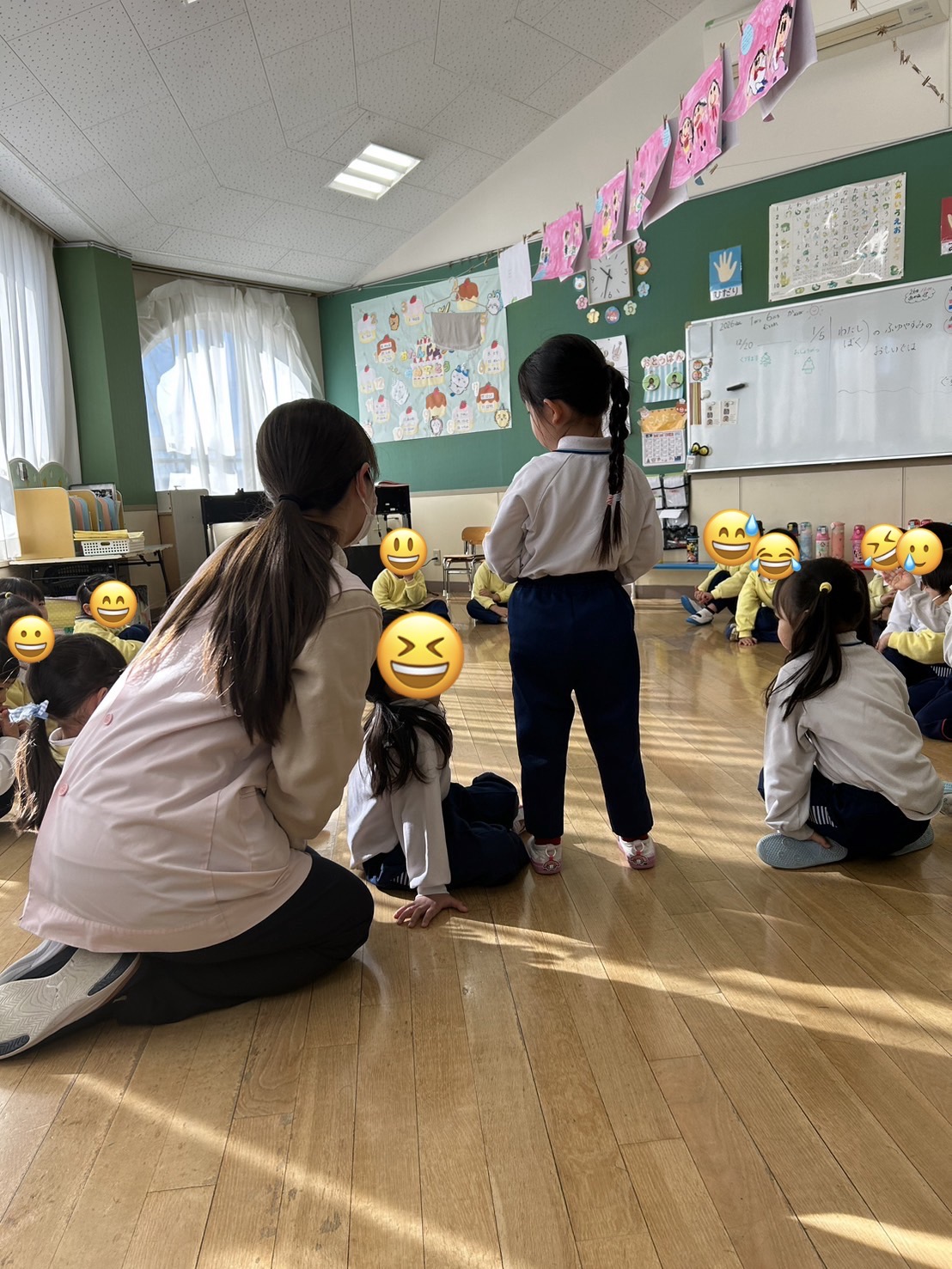 年少さんは干支の絵本の読み聞かせや一人ずつ「冬休みの楽しかった思い出」を発表していました😁