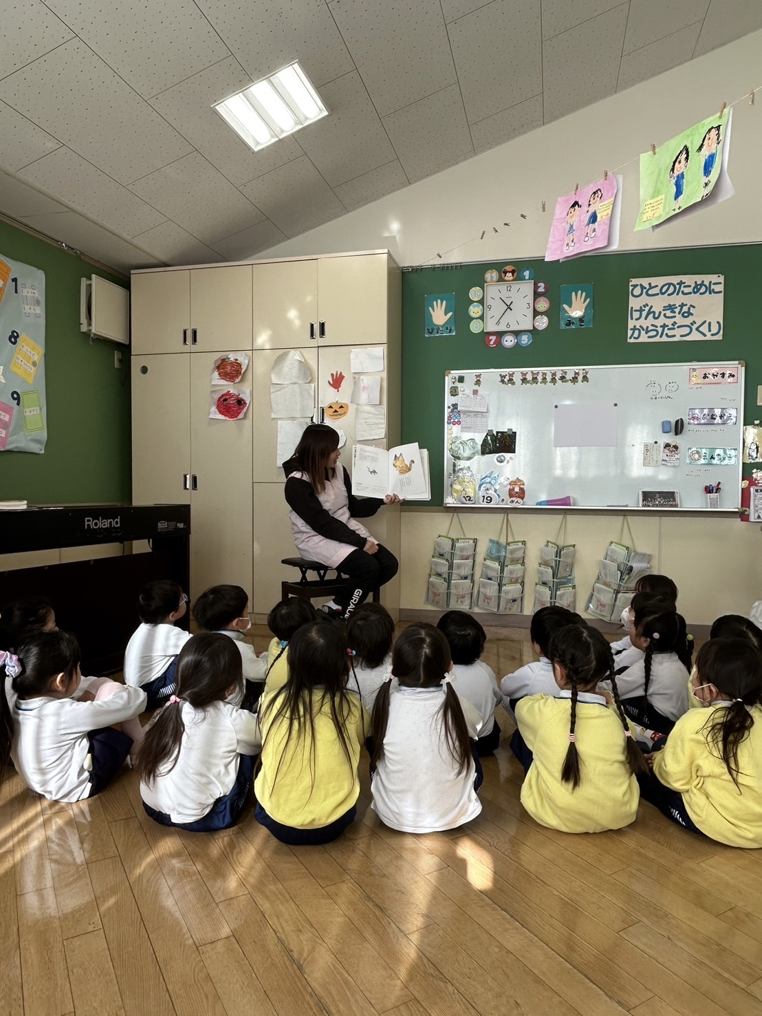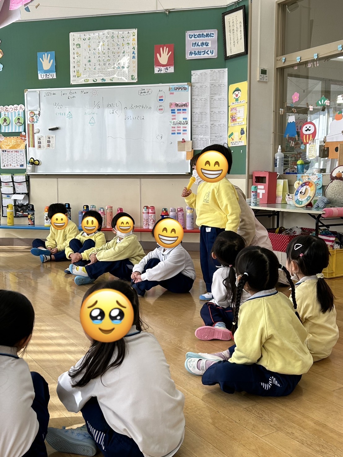 年少さんは干支の絵本の読み聞かせや一人ずつ「冬休みの楽しかった思い出」を発表していました😁