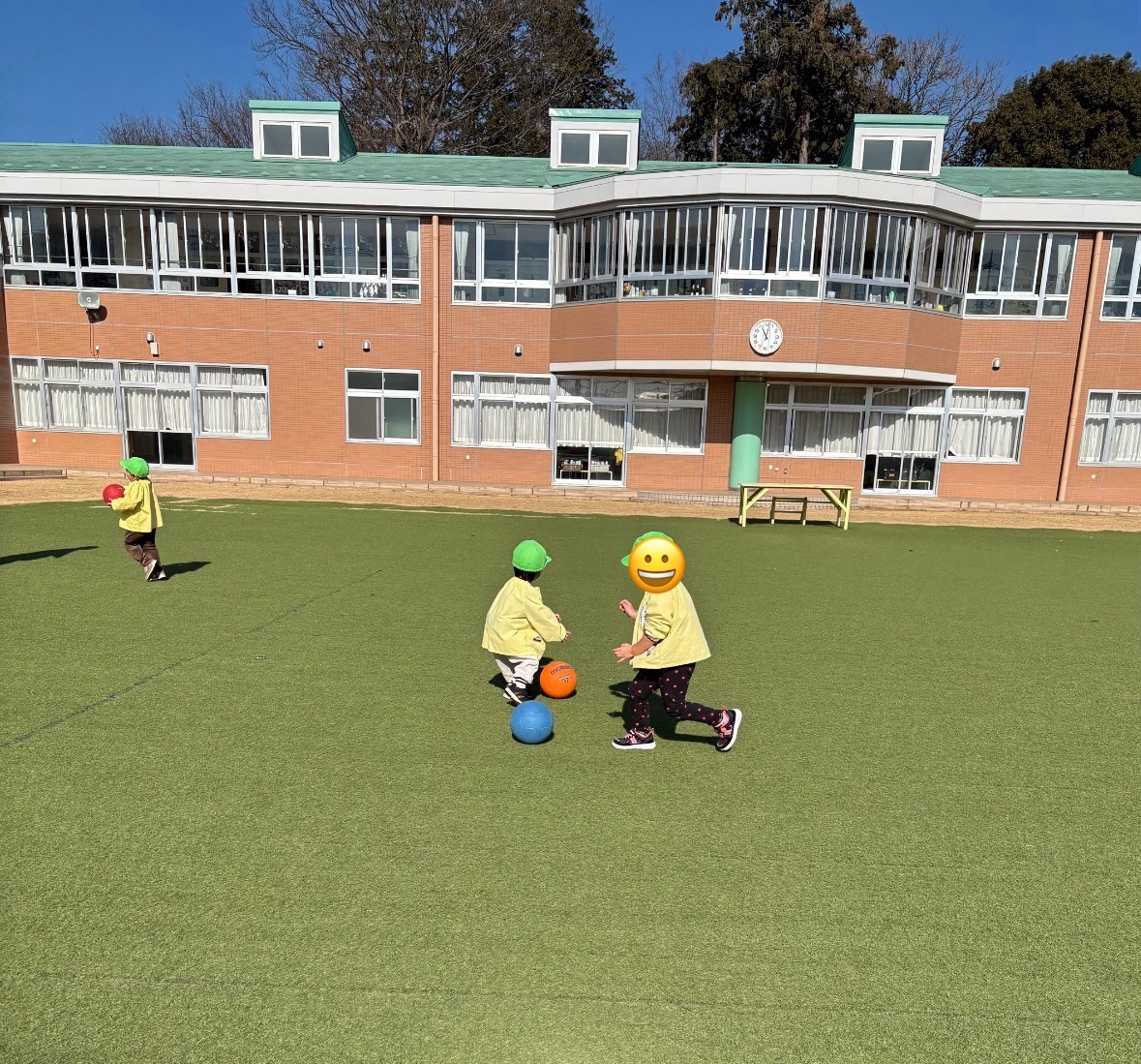 青空に広〜い園庭!とびっきりの笑顔遊んでいます😊